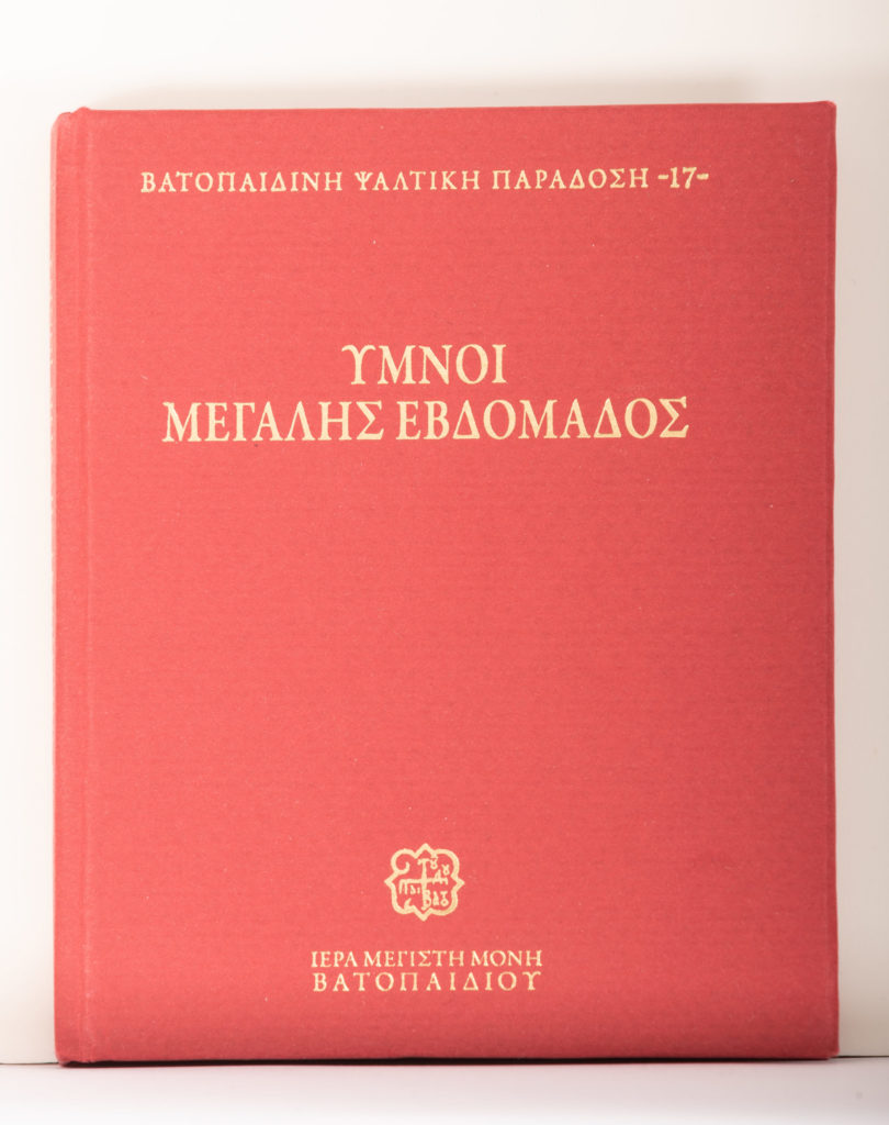 Η Ιερά Μεγίστη Μονή Βατοπαιδίου συνεχίζοντας την σειρά Βατοπαιδινή Ψαλτική Παράδοση επέλεξε, στον αριθμό 17, να περιληφθούν επιλογή ύμνων από την Μεγάλη Εβδομάδα.