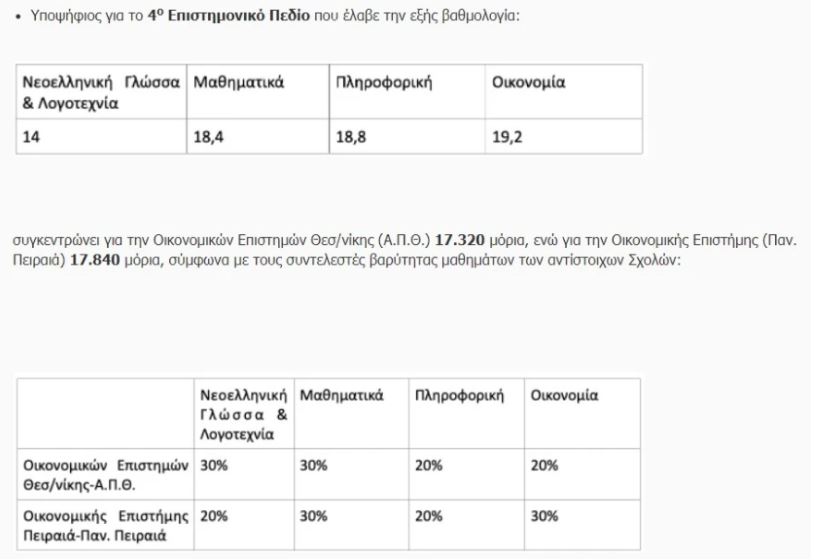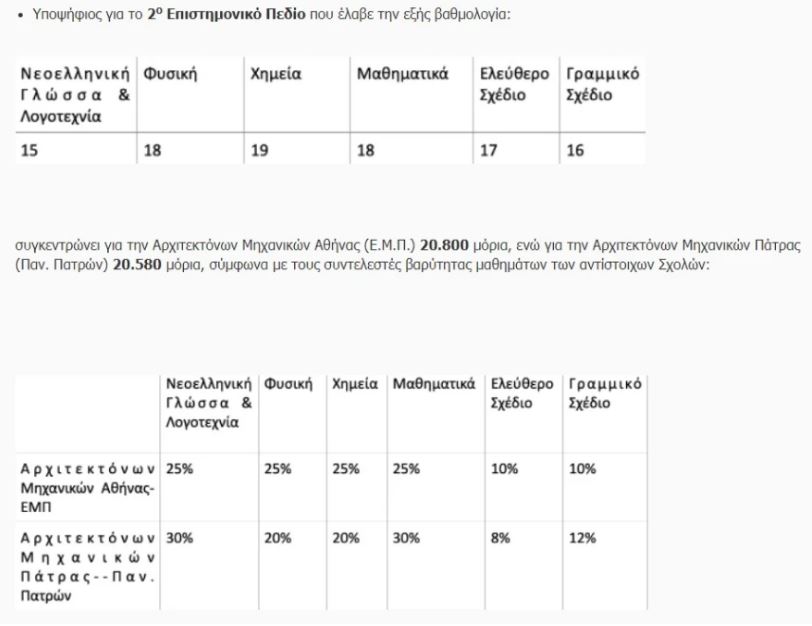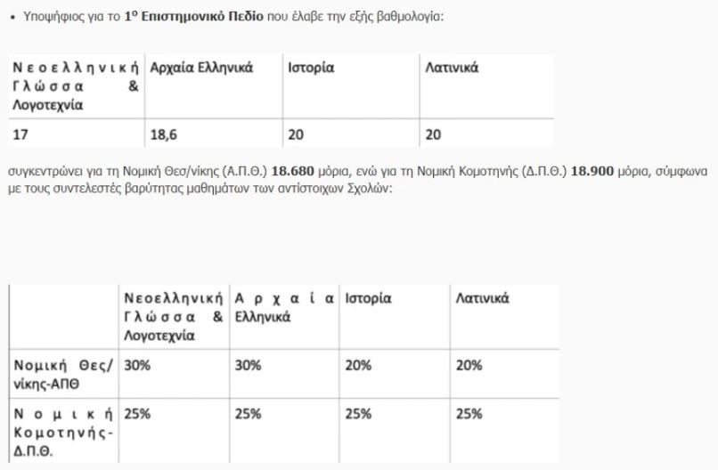 Δεδομένου του γεγονότος ότι οι συντελεστές βαρύτητας μαθημάτων, όπως τέθηκαν από τα Ιδρύματα, σε κάποιες περιπτώσεις διαφέρουν μεταξύ Σχολών, Τμημάτων ή Εισαγωγικών Κατευθύνσεων ιδίου γνωστικού αντικειμένου, ενδέχεται να προκύψουν διαφοροποιήσεις στον υπολογισμό των μορίων των υποψηφίων.