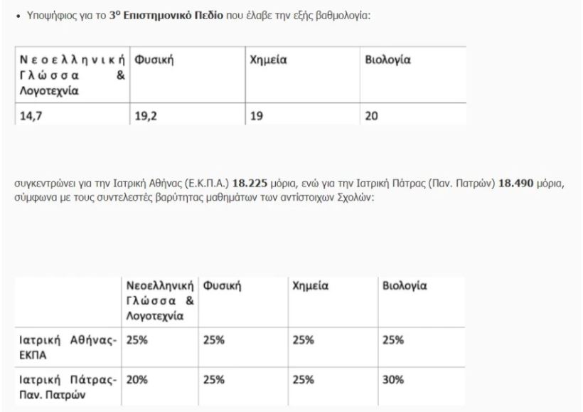 Δεδομένου του γεγονότος ότι οι συντελεστές βαρύτητας μαθημάτων, όπως τέθηκαν από τα Ιδρύματα, σε κάποιες περιπτώσεις διαφέρουν μεταξύ Σχολών, Τμημάτων ή Εισαγωγικών Κατευθύνσεων ιδίου γνωστικού αντικειμένου, ενδέχεται να προκύψουν διαφοροποιήσεις στον υπολογισμό των μορίων των υποψηφίων.