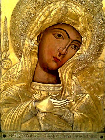 ῾Η Εἰκόνα τῆς Παναγίας δέν εἶναι Βρεφοκρατούσα στόν τύπο τῆς ῾Οδηγήτριας ἤ τῆς Γλυκοφιλούσας.