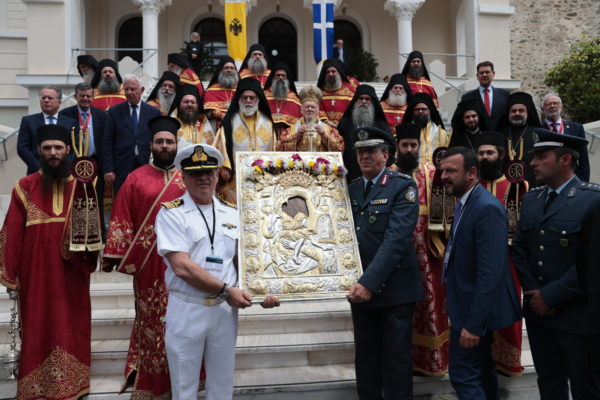 Ο Παναγιώτατος στον χαιρετισμό του από το λιμάνι της Δάφνης επεσήμανε την αρχή της “συναλληλίας” μεταξύ της ελληνικής πολιτείας για το πολιτικό και διοικητικό κομμάτι του Αγίου Όρους, καθώς συνιστά “αναπόσπαστο” τμήμα της ελληνικής εδαφικής επικράτειας και της “Μητέρας Εκκλησίας” που καθοδηγεί πνευματικώς την μοναστική πολιτεία, τονίζοντας αυτή η σχέση, διαχρονικά, με σεβασμό των κανόνων, “διέγραψε παραγωγική πορεία προς ωφέλεια πάντων” και συνέχισε :