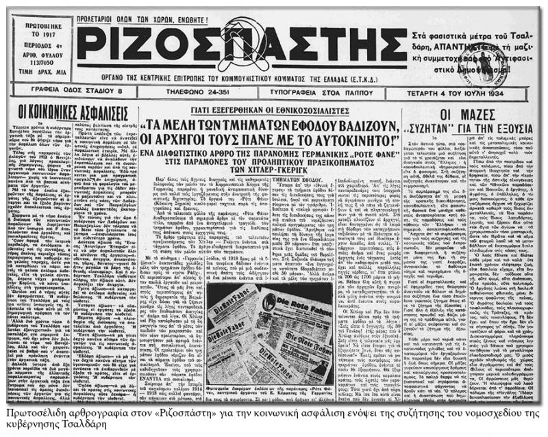 Η πρωτοτυπία του ελληνικού συστήματος ήταν ότι με την έναρξη λειτουργίας του, το 1934, το ΙΚΑ είχε –όπως όλοι γνώριζαν– ετήσιο έλλειμμα 177,5 εκατ. δραχμές! Αυτό συνέβαινε επειδή η δεξιά κυβέρνηση Π. Τσαλδάρη θέλησε να «ελαφρύνει» από εισφορές τους εργοδότες και προχώρησε σε μείωσή τους σε σχέση με τον αρχικό νόμο περί κοινωνικής ασφάλισης!