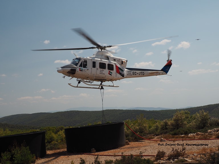 Σε μια από τις φωτογραφίες του άρθρου, εικονίζεται Έλληνας εποχικός δασοπυροσβέστης σε σημείο υδροληψίας πυροσβεστικών ελικοπτέρων. Η φωτογραφία είναι αυθεντική, η κλίση όμως του εδάφους ( πρανές ) ” ξεγελάει το μάτι ” και νομίζουμε, ότι ο κάδος του Ε / Π είναι δίπλα από το κεφάλι του, ενώ στην πραγματικότητα είναι πολλά μέτρα μακριά, τηρουμένων των μέτρων ασφαλείας.