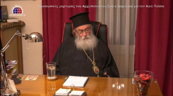 Στις 16:36, ο Αρχιεπίσκοπος Σινά κ. Δαμιανός καταθέτει στον δημοσιογράφο Δημήτρη Στρουμπάκο προσωπικές του μαρτυρίες από τη γνωριμία του με τον Άγιο Παΐσιο , κάποιες εκ των οποίων βρίσκονται καταγεγραμμένες σε χειρόγραφες σημειώσεις και περιγραφικές διηγήσεις του Σεβασμιωτάτου.