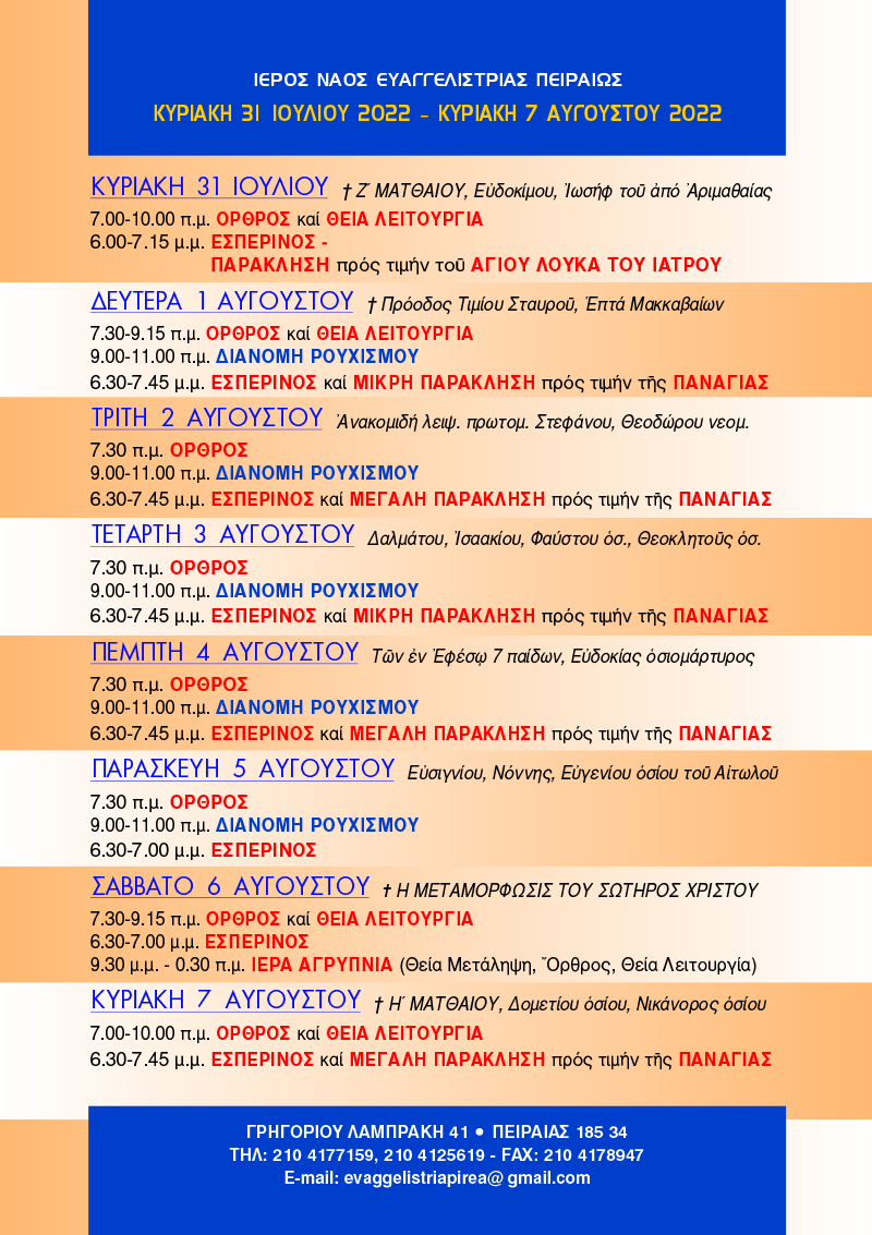 «Νέα Ενοριακή» 31 Ιουλίου– 7 Αυγούστου 2022 αρ.337