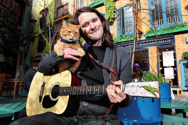 Σύντομα ο Μπομπ με τα χαρακτηριστικά κασκόλ που του φορούσε κάθε μέρα το αφεντικό του, και ο Τζέιμς έγιναν δυο χαρακτηριστικές φιγούρες του Covent Garden. Οι περαστικοί σταματούσαν και τους τραβούσαν φωτογραφίες. Ο Τζέιμς και ο Μπομπ να κάθεται σαν παπαγάλος στον ώμο του.