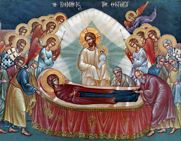 Τότε ο Γαβριήλ την ενημέρωσε ότι πλέον ήρθε η ώρα, δίνοντας της μεγάλη χαρά αφού θα έβλεπε ξανά το παιδί Της. Η παράδοση αναφέρει ότι την τρίτη ήμερα από την εμφάνιση του αγγέλου, λίγο πριν κοιμηθεί η Θεοτόκος, οι Απόστολοι δεν ήταν όλοι στα Ιεροσόλυμα, αλλά σε μακρινούς τόπους όπου κήρυτταν το Ευαγγέλιο.