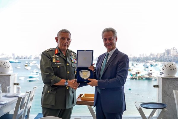 Τέλος, συναντήθηκε στην Πρεσβευτική Κατοικία με τον Πρέσβη της Ελλάδος στην Αίγυπτο κ. Νικόλαο Γαριλίδη, με τον οποίο σε ιδιαίτερα θερμό κλίμα συζήτησαν για τις τρέχουσες εξελίξεις στην Ανατολική Μεσόγειο, στα Βαλκάνια, στη Μέση Ανατολή και στην Βόρεια Αφρική, για την διαρκή εμβάθυνση των σχέσεων και της Στρατιωτικής Συνεργασίας των 2 Χωρών, καθώς και για τα πολυμερή σχήματα συνεργασίας στα οποία συμμετέχουμε από κοινού και τον ρόλο τους για την ασφάλεια και την σταθερότητα της ευρύτερης περιοχής.