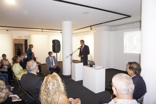 Τα εγκαίνια της έκθεσης πραγματοποιήθηκαν τη Δευτέρα 5 Σεπτεμβρίου και προλόγισε ο Υφυπουργός Παιδείας και Θρησκευμάτων κ. Άγγελος Συρίγος. Χαιρετισμούς απηύθυναν ο Πρύτανης του Εθνικού και Καποδιστριακού Πανεπιστημίου Αθηνών κ. Αθανάσιος – Μελέτιος Δημόπουλος, ο Κοσμήτορας της Θεολογικής Σχολής Αθηνών, κ. Χρήστος Καραγιάννης, ο Πρόεδρος της Εταιρείας Διαχειρίσεως και Αξιοποιήσεως της περιουσίας του ΕΚΠΑ κ. Νικόλαος Θωμαΐδης, ο Αναπλ. Πρόεδρος του Τμήματος Θεολογίας κ. Κωνσταντίνος Κορναράκης και εκ μέρους του Τμήματος Κοινωνικής Θεολογίας και Θρησκειολογίας ο Καθηγητής κ. Σωτήριος Δεσπότης. Σύντομη παρουσίαση των εικαστικών δημιουργιών του διακεκριμένου καλλιτέχνη πραγματοποίησε ο Καθηγητής του ΕΚΠΑ – κριτικός τέχνης Μάνος Στεφανίδης.