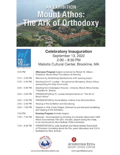 Η εκδήλωση θα πραγματοποιηθεί την Τρίτη 13 Σεπτεμβρίου 2022 στο Μαλιώτειο Πολιτιστικό Κέντρο (Maliotis Cultural Center) του Ελληνικού Κολεγίου και της Θεολογικής Σχολής του Τιμίου Σταυρού στη Βοστώνη.