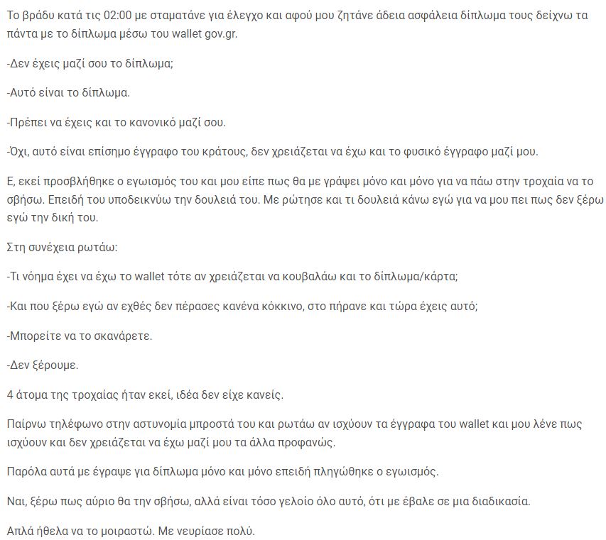 Η ΕΛ.ΑΣ δεν δέχθηκε το ψηφιακό δίπλωμα σε έλεγχο – Και γράφει κανονικά