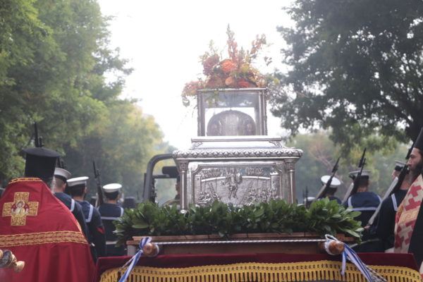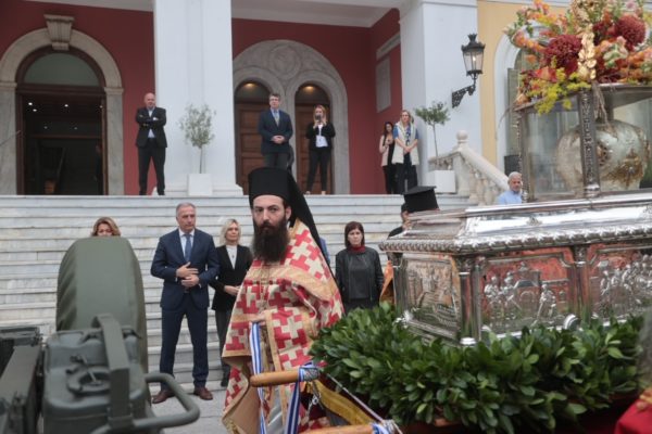 Άξιο λόγου είναι το γεγονός ότι για πρώτη φορά φέτος οι ιερές εικόνες και τα ιερά λείψανα έφτασαν μέχρι τον προαύλιο χώρο του υπουργείου Εσωτερικών (Μακεδονίας – Θράκης), όπου οι Αρχιερείς ανέπεμψαν δέηση και προσκύνησε ο Υφυπουργός κ. Σταυρος Καλαφάτης.
