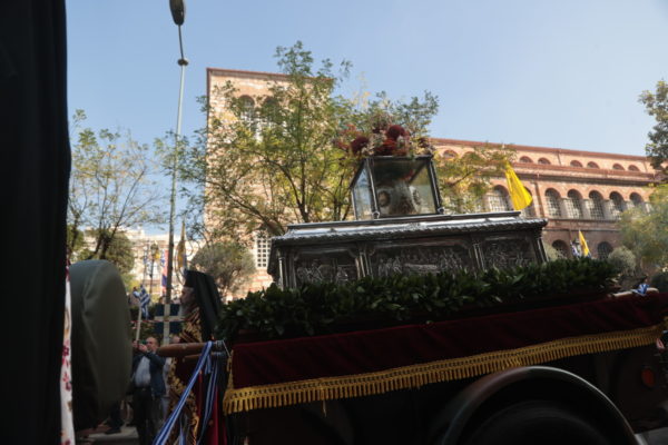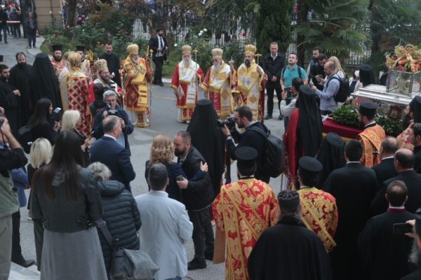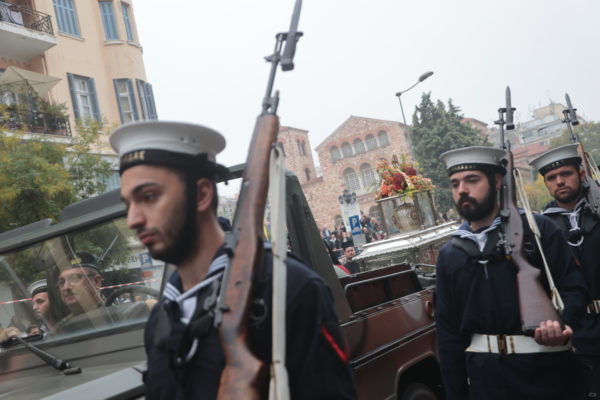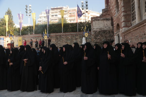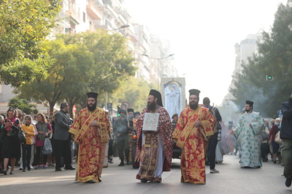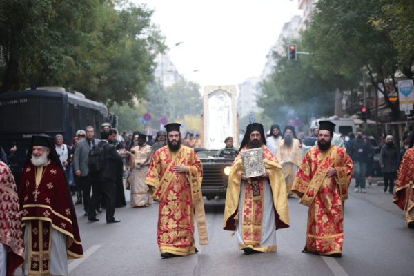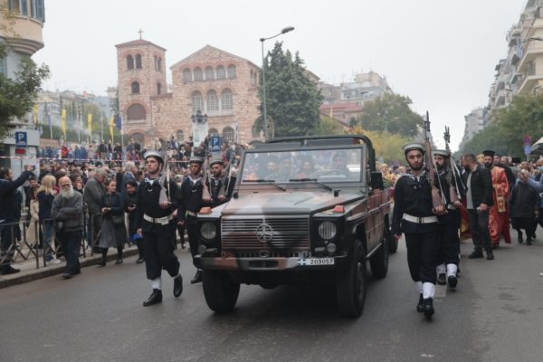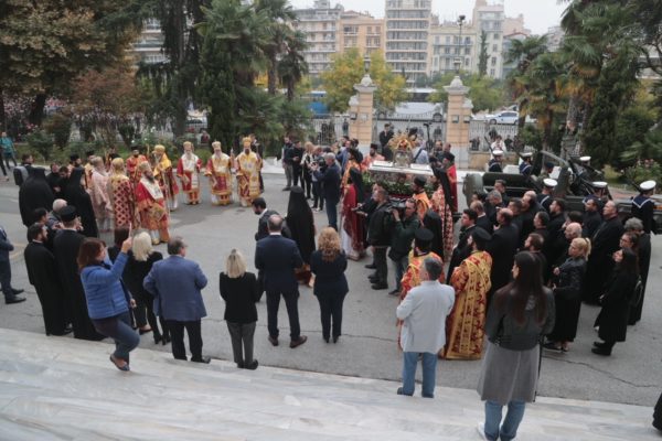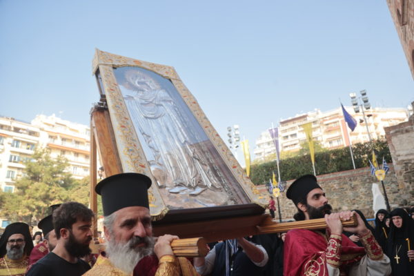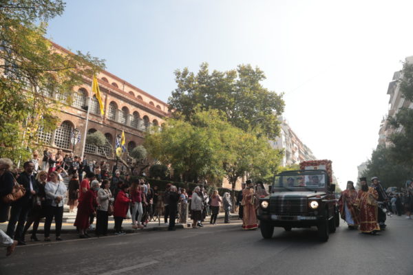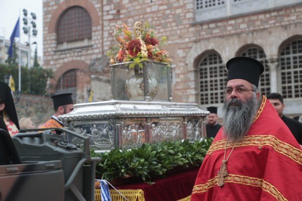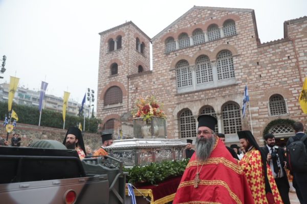 Με υψηλές τιμές και μια ξεχωριστή πορεία πραγματοποιήθηκε η λιτανεία του ιερού λειψάνου του Αγίου Δημητρίου και της θαυματουργής εικόνας της Παναγίας της Γεροντίσσης στους κεντρικούς δρόμους γύρω από τον ναό του Αγίου Δημητρίου στην Θεσσαλονίκη.