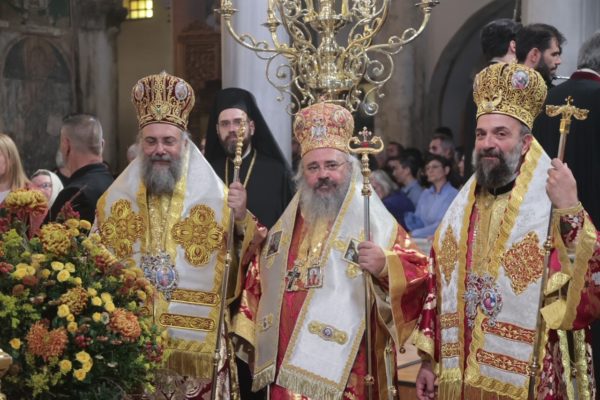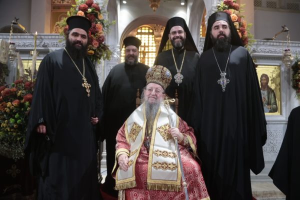 Στη Δοξολογία συγχοροστάτησαν οι Αρχιερείς οι οποίο νωρίτερα έλαβαν μέρος στο Πολυαρχιερατικό Συλλείτουργο επί τη μνήμη του Αγίου Δημητρίου.