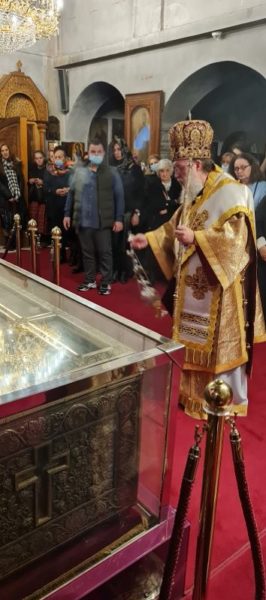 Ανήμερα της Εορτής ο Σεβασμιώτατος κ. Κύριλλος χοροστάτησε στον Όρθρο και ιερούργησε στο Μυστήριο της Θείας Ευχαριστίας πλαισιούμενος από τον Ιεροκήρυκα της Μητροπόλεως Αρχιμανδρίτης π. Νικάνωρα Καραγιάννη (ο οποίος και κήρυξε τον θείο λόγο), τους Αρχιερατικούς Επιτρόπους Κηφισιάς Αρχιμανδρίτη π. Γρηγόριο Λιέπουρη, Εκάλης – Νέας Ερυθραίας Αρχιμανδρίτη π. Αθανάσιο Ντέτσικα, και ιερείς της περιοχής.