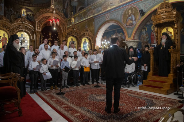Η εκδήλωση ξεκίνησε με την χορωδία της Ιεράς Μητροπόλεως υπό τη διεύθυνση του κ. Πάρη Γκούνα να ερμηνεύει παραδοσιακά κάλαντα από διάφορες περιοχές της Ελλάδος.
