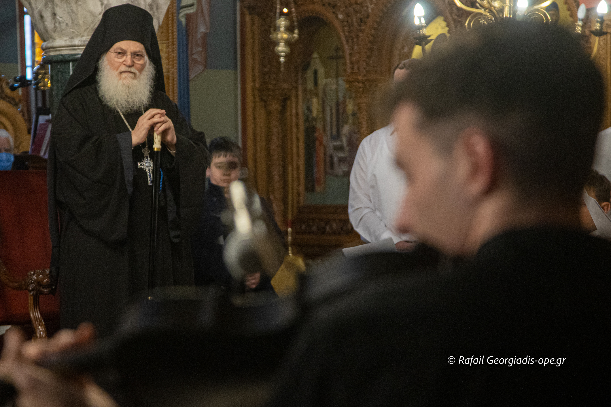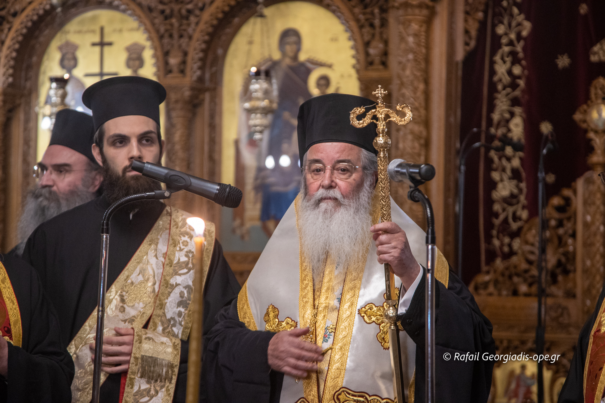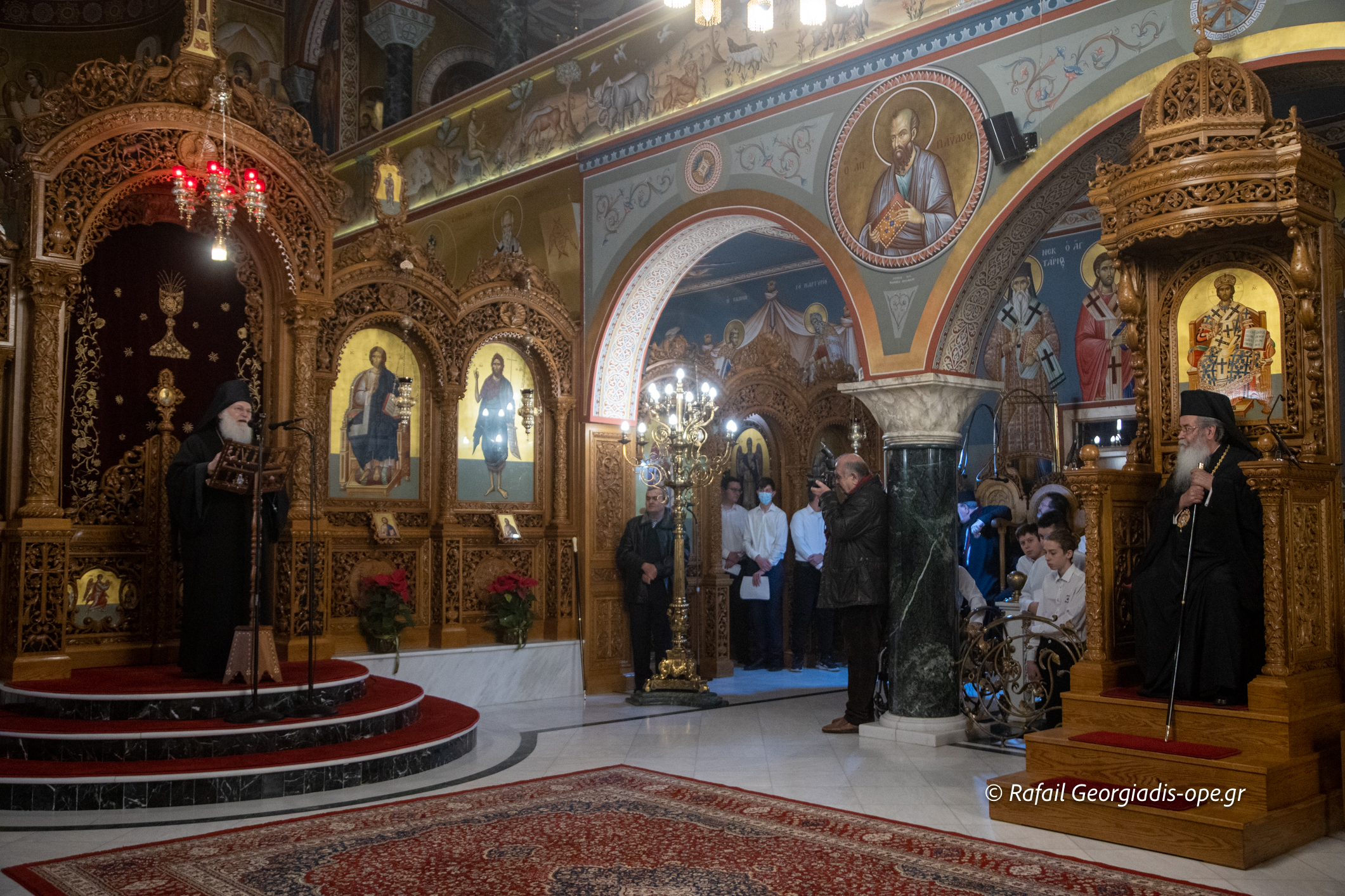 Στη συνέχεια σημείωσε ότι «στην Μητρόπολή μας, πριν μπούμε στην περίοδο της καραντίνας, ο Πανοσιολογιώτατος Καθηγούμενος μας έφερε ένα μεγάλο σέβασμα στον Καθεδρικό μας Ναό, την Παναγία την Βηματάρισσα με όλη την ιστορία που έχει αυτή η ιερά εικόνα. Και το Σάββατο, εκόμισε το αντίγραφο του τίμιου Σταύρου, αυτόν τον Σταύρο που είδε στον ουρανό ο Μέγας Κωνσταντίνος».