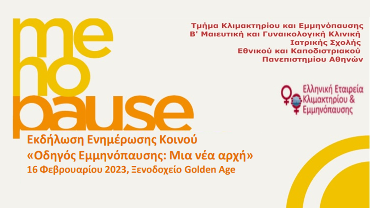 Ο Οδηγός Εμμηνόπαυσης θα παρουσιαστεί και θα διανεμηθεί σε εκδήλωση που θα πραγματοποιηθεί, με ελεύθερη είσοδο για το κοινό, την Πέμπτη 16 Φεβρουαρίου 2023, στο Ξενοδοχείο Golden Age (Μιχαλακοπούλου 57, Αθήνα, 11528) και ώρα 18:30.