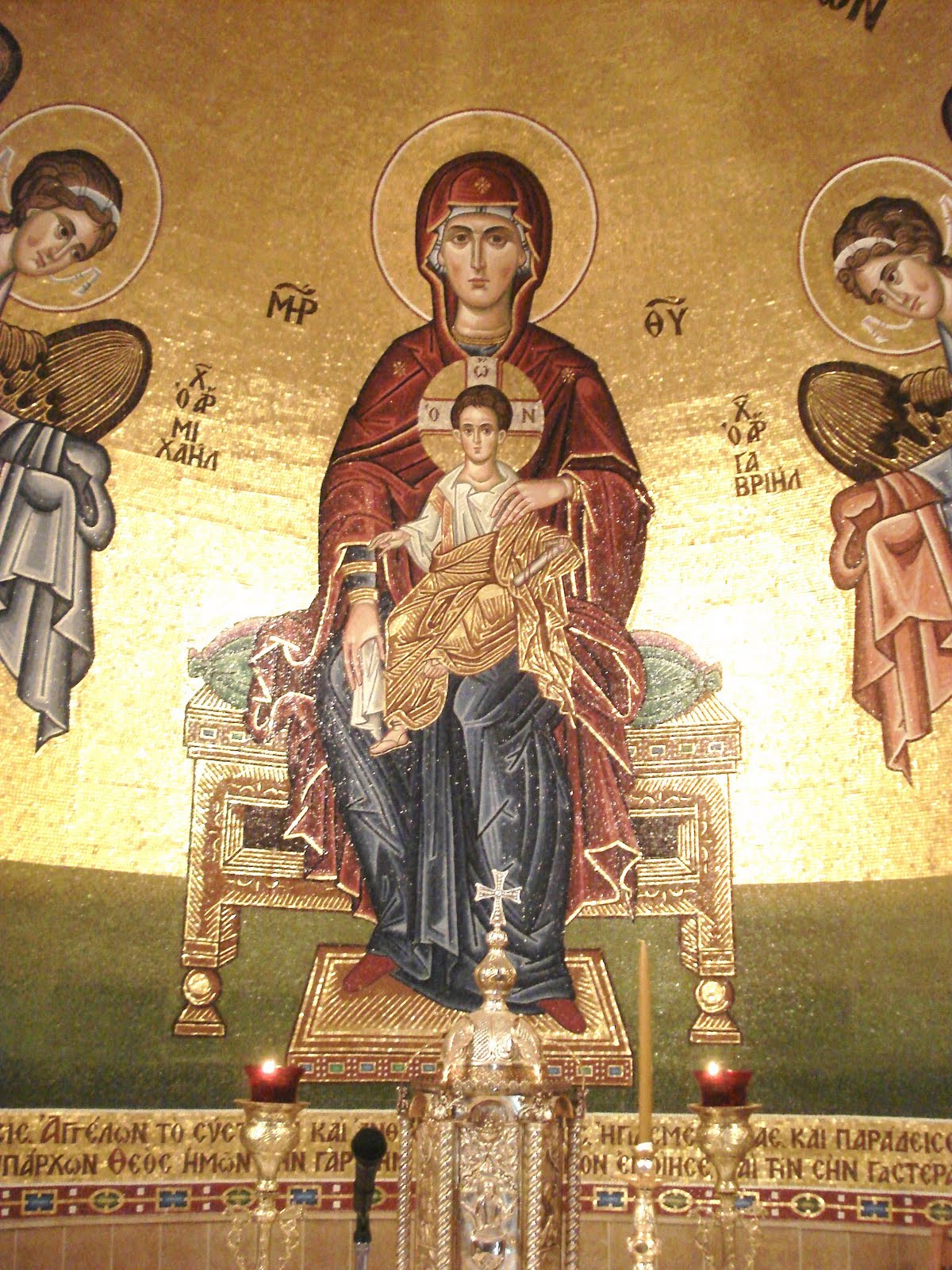 «Η Πλατυτέρα των Ουρανών», ψηφιδωτό έργο στην Ιερά Μονή Αντίνιτσας Φθιώτιδας. Έργο του Λαμιώτικου ζεύγους καλλιτεχνών αγιογράφων, ψηφιδοτοποιών και συντηρητών Θεόδωρου και Ένζας Μώρη