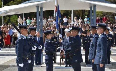 Τρία χρόνια μετά, ο αρχηγός της τάξης 2019 των νέων ανθυποσμηναγών της παρέδωσε την πολεμική σημαία της Σχολής Ικάρων.