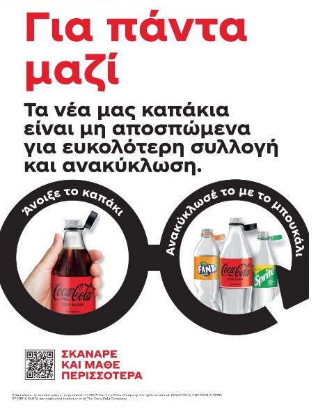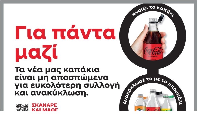Σύμφωνα με έρευνες τα περισσότερα πλαστικά απορρίμματα δημιουργούνται από συσκευασίες προϊόντων που χρησιμοποιούμε στην καθημερινότητά μας και δεν ανακυκλώνουμε ορθά. Η Coca-Cola στην Ελλάδα (Coca-Cola Τρία Έψιλον και Coca-Cola Hellas) πιστή στο όραμά της «Για Έναν Κόσμο Χωρίς Απορρίμματα» και προκειμένου να συμβάλλει στην προσπάθεια όλων για μείωση των πλαστικών απορριμμάτων, αλλάζει τις συσκευασίες της σε όλα τα αναψυκτικά, τους χυμούς και τα ροφήματα που περιλαμβάνονται στο χαρτοφυλάκιο της και παράλληλα δημιουργεί την ενημερωτική καμπάνια «Για Πάντα Μαζί». Ο νέος σχεδιασμός αφορά τα πλαστικά μπουκάλια της εταιρείας στα οποία πλέον τα καπάκια γίνονται μη αποσπώμενα. Με τον τρόπο αυτό η Coca-Cola εξασφαλίζει πως τα καπάκια θα ανακυκλωθούν σωστά, μαζί με την υπόλοιπη συσκευασία και δεν θα καταλήξουν ως απορρίμματα. Η εταιρεία εφαρμόζει την Ευρωπαϊκή Οδηγία και τη σχετική Ελληνική νομοθεσία έναν χρόνο νωρίτερα από το 2024 που προβλέπουν οι αντίστοιχες προθεσμίες.