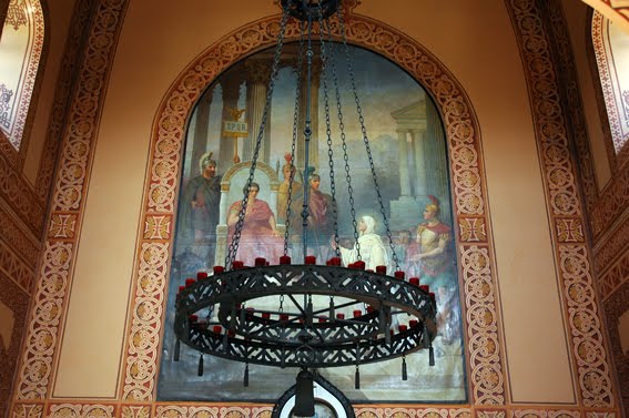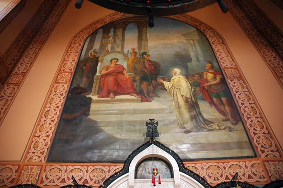 Μέσα στο Ναό του Μοναστηριού και πάνω από το Ιερό Τέμπλο του Ιερού Βήματος, υπάρχει μεγάλη τοιχογραφία όπου παρουσιάζεται η Μαρία η Μαγδαληνή μπροστά στον Τιβέριο Καίσαρα και του χαρίζει ένα κόκκινο αυγό.