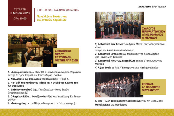 3 Μαΐου 2023 και ώρα 19.00 Ι. Μητροπολιτικός Ναός Μυτιλήνης