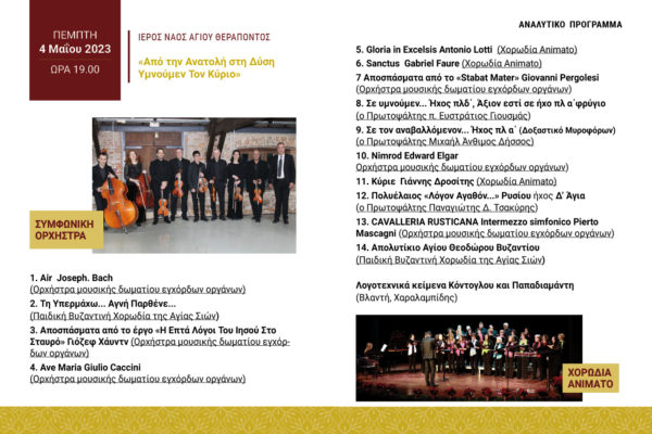 4η Μαΐου 2023 και ώρα 19.00 Ιερός Ναός Αγίου Θεράποντος