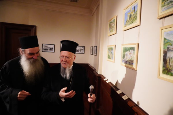 Ο Οικουμενικός Πατριάρχης στην έκθεση ζωγραφικής του Αγιορείτου Ιερομονάχου Λουκά Ξενοφωντινού