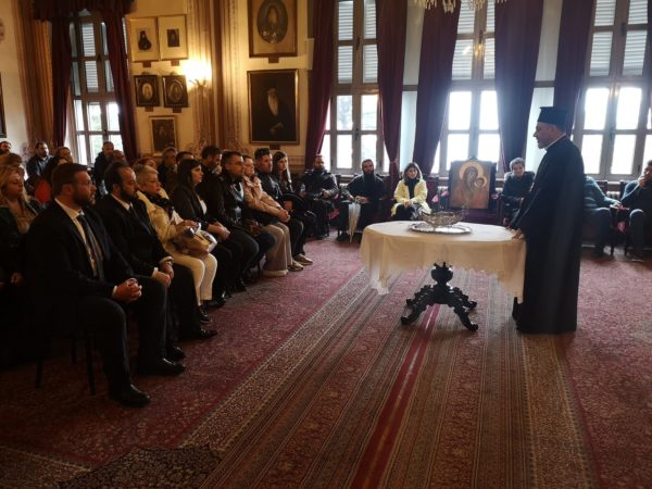 Ακολούθως, οι επισκέπτες ξεναγήθηκαν στο ναΰδριο, στις αίθουσες διδασκαλίας, στη βιβλιοθήκη και τους λοιπούς χώρους της Σχολής.