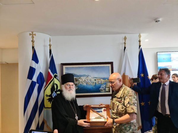 Με τον Αρχηγό Εθνικής Φρουράς, Αντιστράτηγο Δημόκριτο Ζερβάκη, είχε συνάντηση το πρωί της Τετάρτης, 3 Μαϊου, ο Καθηγούμενος της Ιεράς Μεγίστης Μονής Βατοπαιδίου, Γέροντας Εφραίμ.