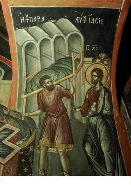Το Ιερό Ευαγγέλιο μας είπε σήμερα για το θαύμα του Ιησού Χριστού στα Ιεροσόλυμα, τότε που θεράπευσε τον παράλυτο. Η αρρώστια είναι κι αυτή στον άνθρωπο κληρονομιά των πρωτοπλάστων, τότε που ο διάβολος στον παράδεισο τους έβαλε να παραβούν την εντολή του Θεού. Τότε με την παράβαση μπήκε στον κόσμο η αρρώστια κι ο θάνατος. Μα γι’ αυτό ήλθε ο Χριστός, για να καταργήσει το θάνατο και να σηκώσει από τους ανθρώπους το βάρος της κακής κληρονομιάς. Σημάδι λοιπόν της θεϊκής παρουσίας ήσαν τα θαύματα που έκαμε ο Ιησούς Χριστός και μάλιστα οι θεραπείες των αρρώστων. Μα ας ακούσουμε στη γλώσσα μας τώρα πώς το Ευαγγέλιο μας ομιλεί για τη θεραπεία του Παραλύτου.