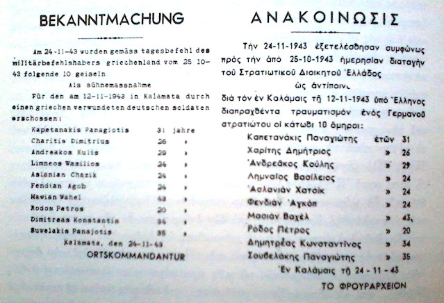 Τα πράγματα εξελίχθηκαν χειρότερα από όσο φοβόταν η μητέρα. Ο πατέρας ήλθε αργά το απόγευμα και είπε στη μητέρα της τα τρομερά μαντάτα: «Ανθούλα μου, οι Γερμανοί ειδοποίησαν τους ανώτερους αξιωματικούς στην Κόρινθο. Εκείνοι διέταξαν αμέσως να κρεμάσουν “στον τόπο του εγκλήματος” τρεις ανθρώπους… Τρεις τυχαίους ανθρώπους!