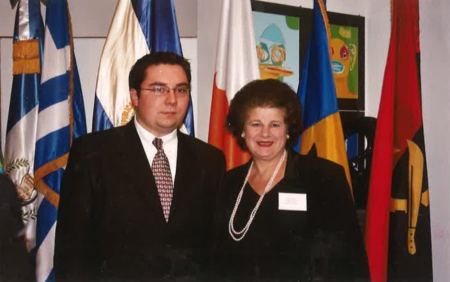Με τον πρέσβη Μιχαήλ Σωτήρχο και τον σύζυγό της Τζορτζ Λούις στα βαφτίσια του γιου της.