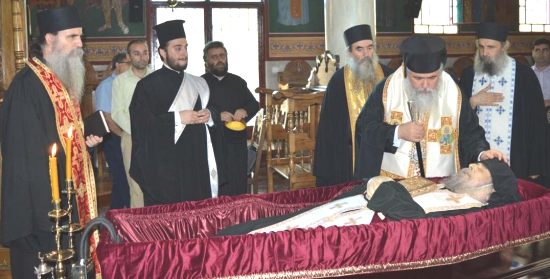 Ο Γέροντας ταλαιπωρήθηκε από σοβαρά προβλήματα υγείας και για το λόγο αυτό τον Μάρτιο του 2013 αναγκάστηκε να παραιτηθεί από τα καθήκοντα της ηγουμενίας του. Κοιμήθηκε την Κυριακή της Πεντηκοστής, 8 Ιουνίου 2014, στο Μετόχι της Ιεράς Μονής Γρηγορίου στη Θεσσαλονίκη και ενταφιάστηκε στο Άγιον Όρος.