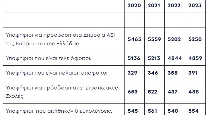 Παγκύπριες: Oι δημοφιλέστερες σχολές με τους περισσότερους υποψηφίους – Αναλυτικά στοιχεία