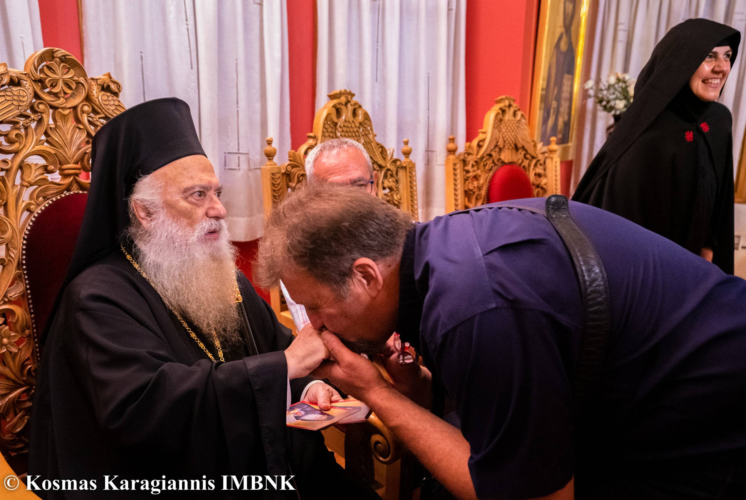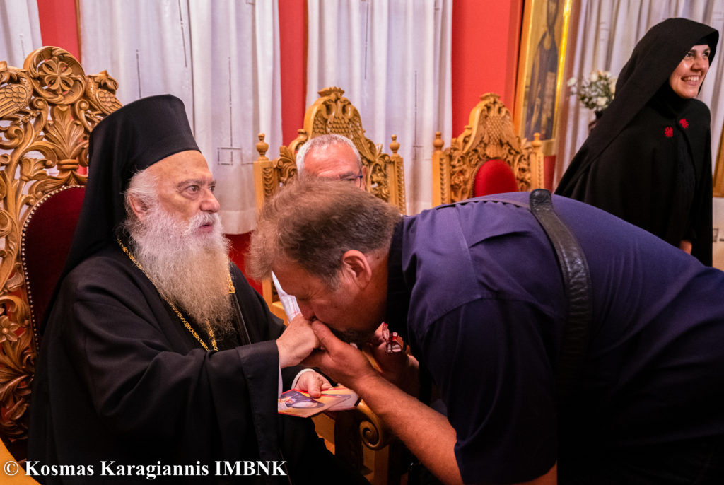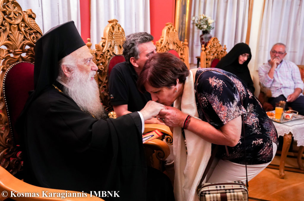 Ο Ποιμενάρχης κ. Παντελεήμων με συγκίνηση υποδέχθηκε τους Αρχιερείς, κληρικούς, τοπικούς πολιτικούς και στρατιωτικούς άρχοντες και τον ευσεβή λαό της Ημαθίας που προσήλθαν για να ευχηθούν για τα ονομαστήρια του, ενώ εξέφρασε τις ευχαριστίες του και ευχήθηκε ο Ιαματικός Άγιος Παντελεήμων να προστατεύει και να σκεπάζει όσους εορτάζουν και τιμούν τη μνήμη του.