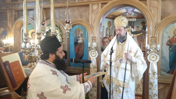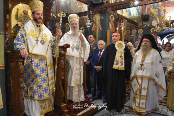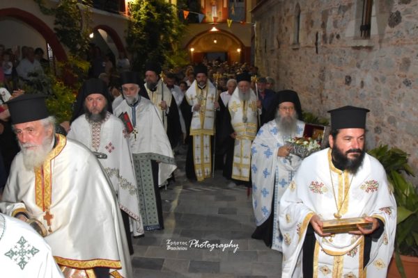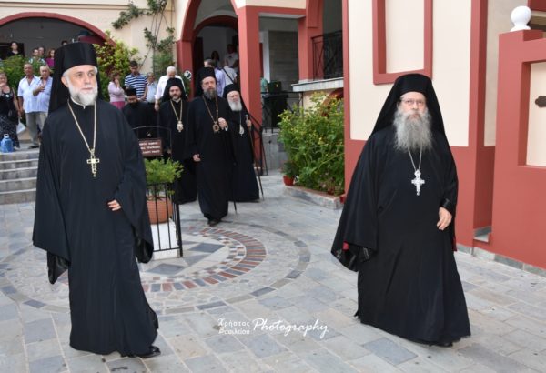 Μετά την συμμετοχή σύσσωμου του πολυπληθούς εκκλησιάσματος στην Θεία Κοινωνία και λίγο πριν την απόλυση, ο Σεβασμιώτατος κ. Χρυσόστομος ευχήθηκε εόρτια στους προσκυνητές και τους κατ’ όνομα εορτάζοντες και ευχαρίστησε τον Καθηγούμενο Αρχιμανδρίτη Γαβριήλ Εμμανουηλίδη, για την άρτια και αρχοντική ετοιμασία της πανηγύρεως.