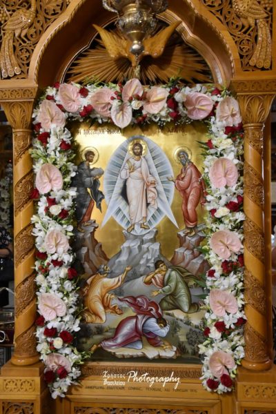 Την κυριώνυμη ημέρα της Εορτής, Κυριακή 6 Αυγούστου 2023, στην Ι. Μονή Οσίου Δαυΐδ, χοροστάτησε στον Όρθρο και προεξήρχε στη Θεία Λειτουργία ο Σεβασμιώτατος Μητροπολίτης Νέας Ιερσέης κ. Απόστολος, ο οποίος εκήρυξε και τον θείο λόγο, αναφέροντας πώς η Μεταμόρφωση του Σωτήρος συγκινεί τους Αγίους τις Εκκλησίας όχι μόνο να τιμούν τη δόξα του Θεού αλλά και να αγωνίζονται διά βίου να γίνουν οι ίδιοι αλλά και όλη η κτίση κοινωνοί αυτής της δόξας και της λαμπρότητας.