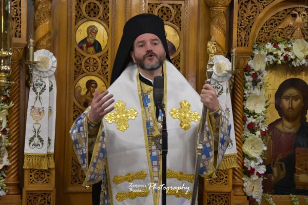 Καλωσόρισε επίσης τον Θεοφιλέστατο Επίσκοπο Ωρεών κ. Φιλόθεο, ο οποίος, κατόπιν κήρυξε τον θείο λόγο, αναφέροντας ότι η συνανάβαση των μαθητών Πέτρου, Ιακώβου και Ιωάννου, με τον Χριστό στο όρος Θαβώρ, είναι έκφραση εθελούσιας αυτοπροσφοράς και αγάπης προς τον Χριστό, προϋποθέσεις που πρέπει να έχει κάθε άνθρωπος, για να κατακτήσει, με τη χάρη του Θεού, το ύψωμα του αγιασμού και της θέας του Θεού.