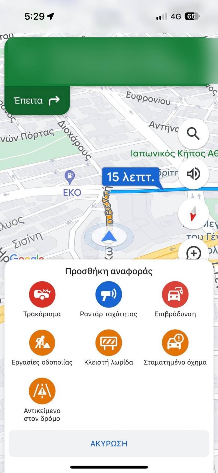 Ειδικότερα, μέσω της εφαρμογής οι οδηγοί μπορούν να αναφέρουν ένα περιστατικό χάρη στην ενότητα «Προσθήκη Αναφοράς» (δείτε παρακάτω), παρέχοντας ενημέρωση στους υπόλοιπους χρήστες του οδικού δικτύου. Η σχετική λειτουργία ανατροφοδότησης από τους οδηγούς είναι ιδιαίτερα χρήσιμη, καθώς μπορεί να περάσει ώρα μέχρι να ενημερωθεί το σύστημα της.