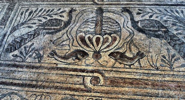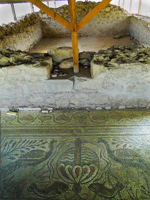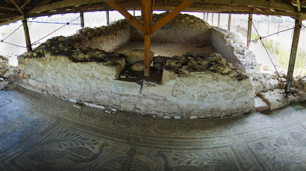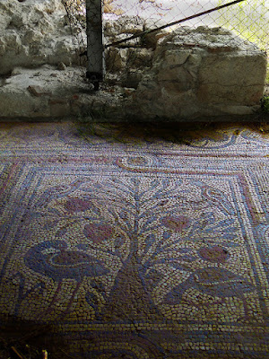 Το δάπεδο του Αγίου Βήματος ήταν στρωμένο με ορθογώνια μαρμάρινα πλακίδια. Το μεσαίο κλίτος είναι στρωμένο με ψηφιδωτά εξαιρετικής ποιότητος: εικονίζεται η σκηνή του παραδείσου με τα ποτιζόμενα ελάφια και ορθογώνια πλαίσια με ένζουδες παραστάσεις. Το δάπεδο του νάρθηκα είναι επίσης στρωμένο με ψηφιδωτά, με παραστάσεις νειλωτικών σκηνών. Τα πλάγια κλίτη είχαν ως δάπεδο το χώμα. Το συγκρότημα εγκαταλείφθηκε, πιθανώς μετά τους σεισμούς του 7ου αιώνα.