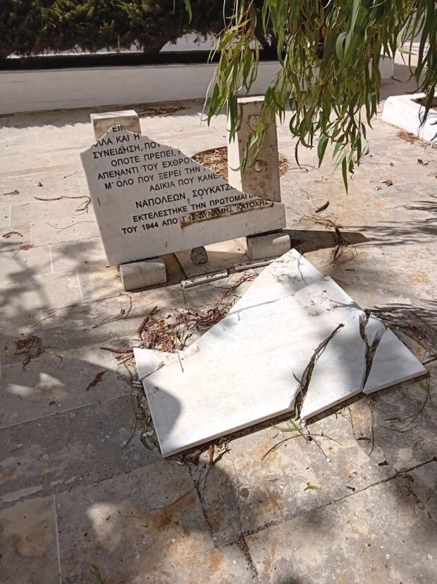 Τον ανδριάντα του Ναπολέοντα Σουκατζίδη στο Αρκαλοχώρι της Κρήτης, βανδάλισαν άγνωστοι, αργά το βράδυ της Κυριακής. Οι δράστες μουτζούρωσαν με σπρέι το άγαλμα σε διάφορα σημεία, ενώ έσπασαν τη μαρμάρινη επιγραφή με τα λόγια του αγωνιστή Ναπολέοντα Σουκατζίδη.