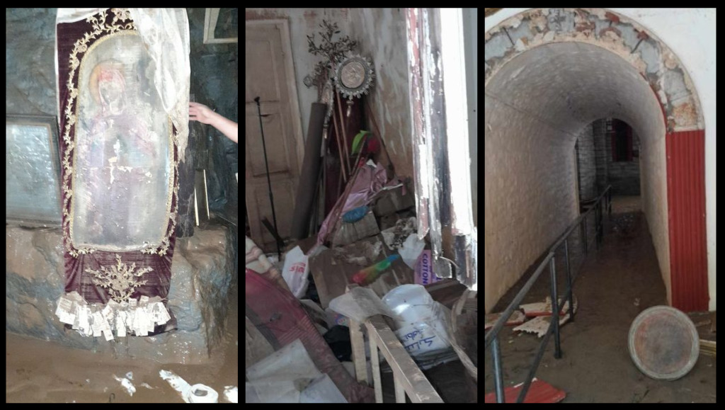 Καθώς τα νερά αποτραβιούνται, κατέστη δυνατόν πρώτη μέρα χθες, προσωπικό του Ιερού Προσκυνήματος Αγίας Παρασκευής Τεμπών, μέσω της γέφυρας της Ραψάνης και της παλαιάς σιδηροδρομικής σήραγγας, να φτάσει στο προσκύνημα της Αγίας Παρασκευής Τεμπών και να αποτυπώσει τη ζημιά.