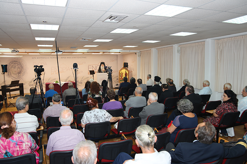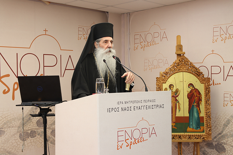 Μετά το πέρας του Αγιασμού, ο Σεβασμιώτατος Μητροπολίτης Πειραιώς κ. Σεραφείμ, αναφέρθηκε στην έναρξη του προγράμματος «ΕΝΟΡΙΑ εν δράσει…», ευχαριστώντας θερμά τους συντελεστές του και τονίζοντας πως αποτελεί, μία πνευματική περίοδο πολλαπλών αγωνιστικών προσπαθειών καταρτίσεως.