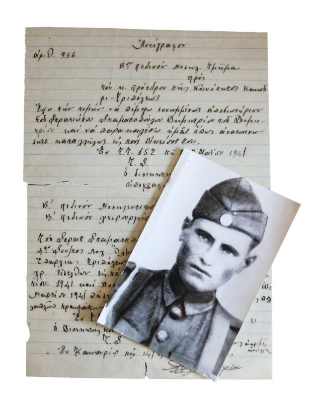 Λίγες ημέρες πριν από το θάνατό του ο παππούς της είχε στείλει ένα γράμμα από το μέτωπο στη σύζυγό του. Εγραφε ότι βρισκόταν στα χιόνια, στα αλβανικά βουνά. «Σε ασπάζομαι», σημείωνε στο τέλος. «Καλή αντάμωση να δώσει ο Θεός».