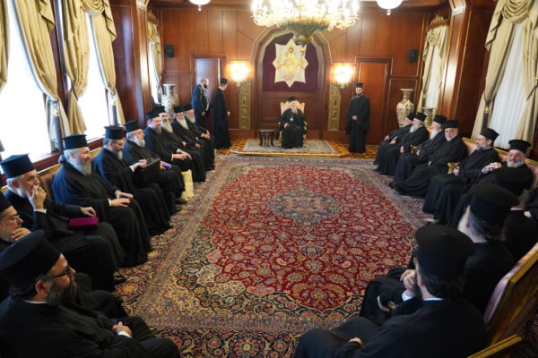 Ο Παναγιώτατος Οικουμενικός Πατριάρχης κ.κ. Βαρθολομαίος, πλαισιούμενος από τα μέλη της Αγίας και Ιεράς Συνόδου, που συνεδριάζει στο Φανάρι, στο πλαίσιο των τακτικών εργασιών της για τον μήνα Νοέμβριο, δέχθηκε με στοργή και εγκαρδιότητα τους εξ Ελλάδος Αρχιερείς στην Αίθουσα του Θρόνου.
