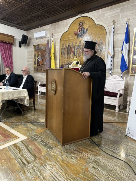 Στον σύντομο χαιρετισμό του ο Μητροπολίτης κ. Ησαΐας ευχαρίστησε τον Μακαριώτατο για την αποδοχή της πρόσκλησης να παραθέσει αυτή τη σημαντική για την Κύπρο και το λαό της διάλεξη.