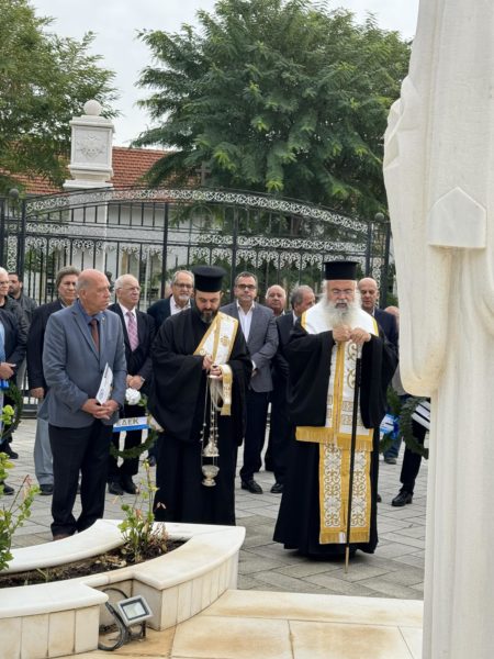 Τρισάγιο στον ανδριάντα του Αρχιεπισκόπου Μακαρίου Γ’ στη Λευκωσία