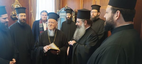 Κατόπιν ο Σεβασμιώτατος Μητροπολίτης κ. Κύριλλος και η συνοδεία του είχαν την ευλογία να επικοινωνήσουν κατ’ ιδίαν με τον Παναγιώτατο Οικουμενικό Πατριάρχη κ.κ. Βαρθολομαίο στο Πατριαρχικό Γραφείο.